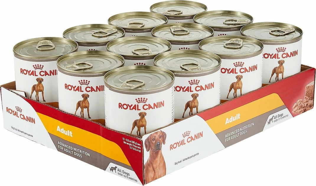 Royal Canin Adult Canned Dog Food provides advanced nutrition to meet your adult dog’s unique nutritional needs. This formula can be given to small breed adult dogs (up to 22 lbs.) over 10 months and to large breed adults (22+ lbs.) over 15 months. Every nutrient included in this diet has a specific purpose that contributes to helping your dog maintain optimal health and wellness. A range of B vitamins, including biotin, niacin, riboflavin, along with minerals like zinc oxide and zinc proteinate work together to nourish your dog’s skin and keep his coat shiny. Biotin is also an important vitamin for supporting healthy nervous system function.