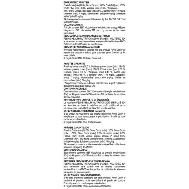 - Meets neutered or spayed catsβ dietary needs with a healthy aging complex and balanced vitamins and minerals.