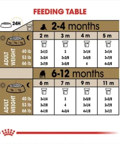 | Age | Adult Target Weight 39.7 lbs Daily Feeding (cup) | Adult Target Weight 52.9 lbs Daily Feeding (cup) | Adult Target Weight 66.1 lbs Daily Feeding (cup) |