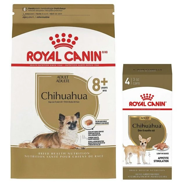 Make sure your adult Chihuahua is getting what she needs with the tailor-made nutrition in our Royal Canin Breed Health Nutrition Chihuahua 8+ Adult Dry Dog Food & Royal Canin Chihuahua Adult Canned Dog Food bundle. The highly digestible recipes are specifically formulated for Chihuahuas 8 years or older to ensure even the pickiest eater will enjoy meal time. Plus, with highly digestible proteins and nutrients to support overall health, you can feel confident that you’re giving her the best care possible, all in a tasty package.