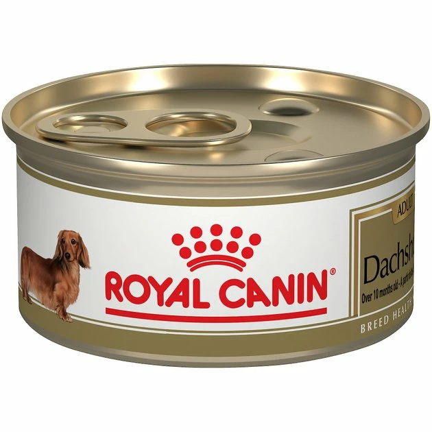 Royal Canin Breed Health Nutrition Dachshund Adult Loaf In Sauce Canned Dog Food is the perfect compliment your pup’s kibble. It provides tailor-made nutrition for purebred dachshunds over 10 months old. This unique breed has short limbs and vertebrae that experience continual points of stress. This exclusive formula provides the precise amount of glucosamine, chondroitin, calcium and phosphorus to help alleviate joint stress and keep your dogโs bones healthy and strong. Itโs also high in protein and L-carnitine to maintain muscle tone and an ideal weight. High-quality carbohydrate sources and highly digestible proteins help facilitate digestion to reduce fecal smell and volume. This formula was designed from Royal Caninโs nutritional expertise combined with the practical knowledge of breeders to meet the specific needs of dachshunds.