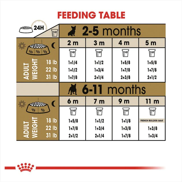 | 12 months | Royal Canin French Bulldog Adult Dry Dog Food | Royal Canin French Bulldog Adult Dry Dog Food | Royal Canin French Bulldog Adult Dry Dog Food |
