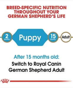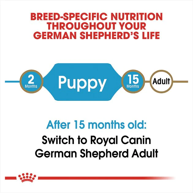 - Designed to meet the nutritional needs of purebred German Shepherd puppies 8 weeks to 15 months old.