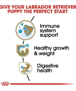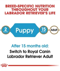 - Designed to meet the nutritional needs of purebred Labrador Retriever puppies 8 weeks to 15 months old.
