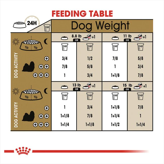 This is only a guide. Optimal feeding amounts may vary according to your dog’s temperament, activity level and environment. If you have any questions regarding your pet’s health, please contact your veterinarian.