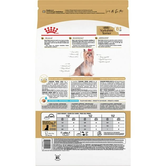 - Dry dog food for your senior purebred Yorkshire terrier.