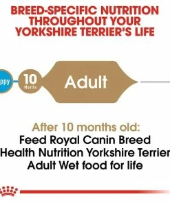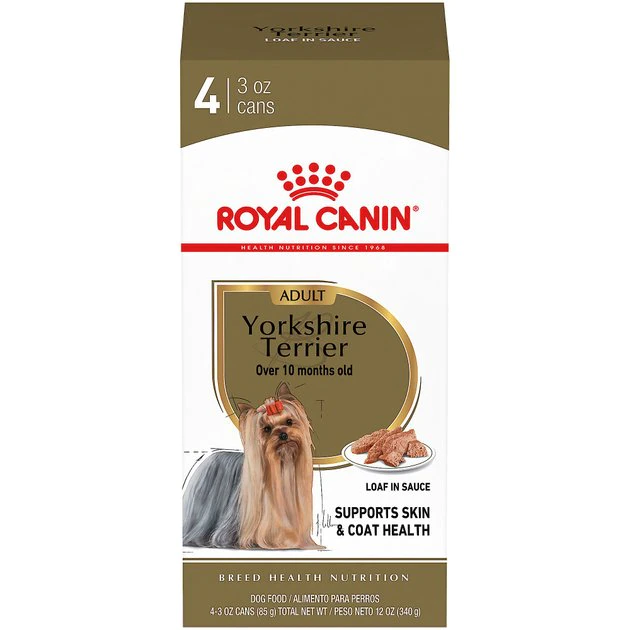 - This complete and balanced wet food has been specifically formulated for purebred adult Yorkshire Terriers. It makes a great compliment to the Yorkshire Terrier adult dry formula.
