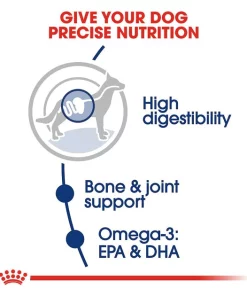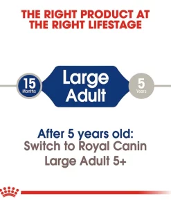 Royal Canin Large Breed Adult Dry Dog Food is tailored to support your big dogโs active lifestyle. This exclusive formula contains an optimal balance of high-quality proteins and fiber for optimal energy and digestive health. Because large breed dogs put a lot of stress on their bones and joints, key nutrients are included to help keep him playing. Omega-3 fatty acids, EPA and DHA, help promote your dogโs coat and skin health. Plus, this dietโs exclusive kibble is designed for large jaws, with a palatability thatโs sure to please. Add some variety to your dogโs bowl by mixing with his favorite wet dog food.