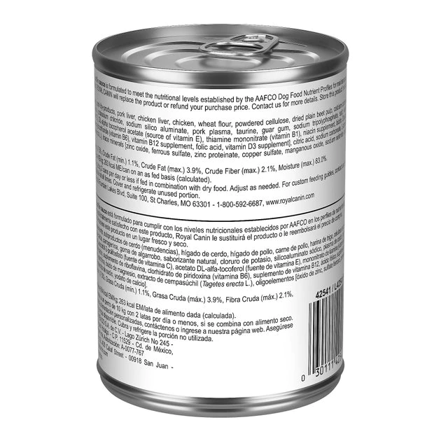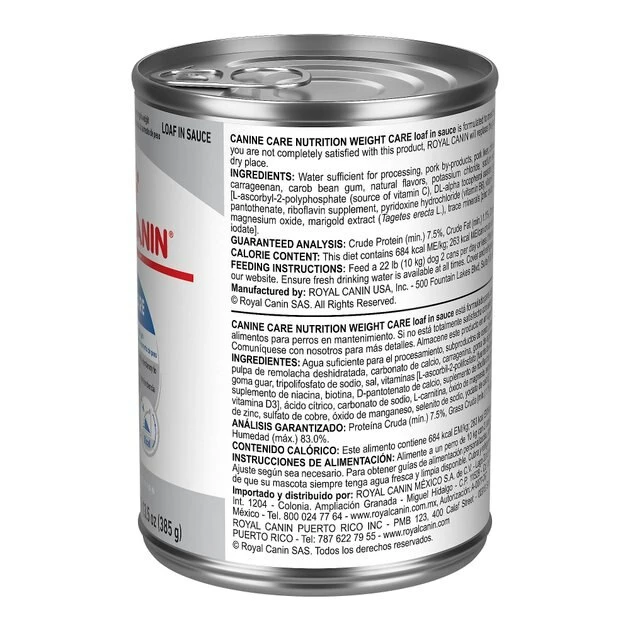 - Tasty loaf in sauce wet dog food pairs perfectly with Royal Canin Weight Care Dry Dog Food.