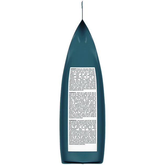 Brewers Rice, Wheat Gluten, Chicken Meal, Chicken Fat, Soy Protein Isolate, Corn Gluten Meal, Natural Flavors, Wheat, Corn, Dried Chicory Root, Fish Oil, Calcium Sulfate, Vegetable Oil, Powdered Cellulose, Sodium Silico Aluminate, Potassium Chloride, Salt, Sodium Pyrophosphate, Fructooligosaccharides, Choline Chloride, Vitamins [Dl-Alpha Tocopherol Acetate (Source Of Vitamin E), L-Ascorbyl-2-Polyphosphate (Source Of Vitamin C), Niacin Supplement, Biotin, Riboflavin Supplement, D-Calcium Pantothenate, Thiamine Mononitrate (Vitamin B1), Pyridoxine Hydrochloride (Vitamin B6), Vitamin A Acetate, Vitamin B12 Supplement, Folic Acid, Vitamin D3 Supplement], Psyllium Seed Husk, Monocalcium Phosphate, Taurine, Trace Minerals [Zinc Proteinate, Zinc Oxide, Ferrous Sulfate, Manganese Proteinate, Manganous Oxide, Copper Sulfate, Calcium Iodate, Copper Proteinate, Sodium Selenite], Rosemary Extract, Preserved With Mixed Tocopherols And Citric Acid.
