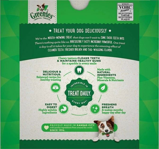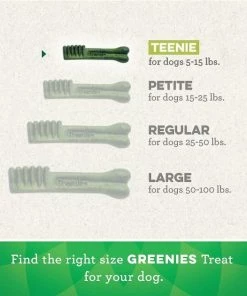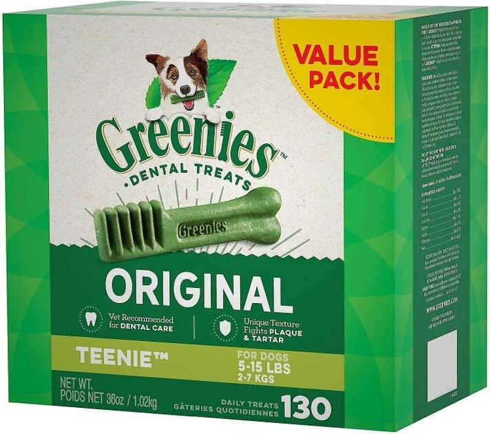 - Greenies Teenie Dental Dog Treats have a chewy texture that cleans down to the gumline to get to hard-to-reach plaque and tartar while freshening breath.