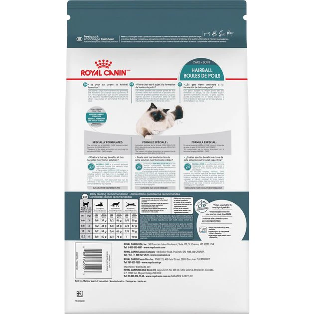 - Dry cat food tailored for cats 1 year and older prone to hairballs.