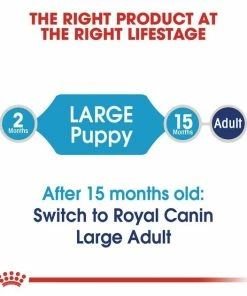 Royal Canin Large Puppy Dry Dog Food is a wholesome puppy food thatโs formulated to support your large dogโs healthy growth and development. This complete and balanced diet helps build strong bones and joints, while an exclusive blend of antioxidants and minerals provides immune support and keeps your puppyโs body growing strong. Its exclusive dog kibble design encourages your pup to chew his food thoroughly. And highly digestible proteins and prebiotics help your dog break down and absorb nutrients for healthy digestion and optimal stools.