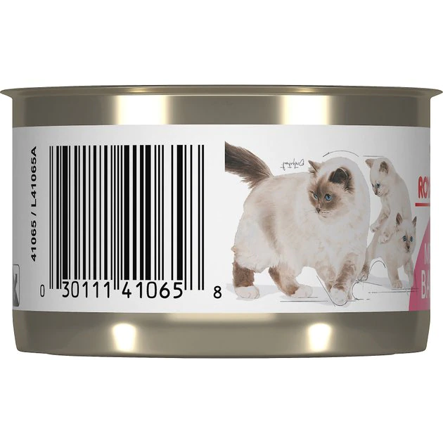 - Wet cat food formulated for the specific needs of growing baby kittens (1-4 months) and queen cats (pregnant or nursing).