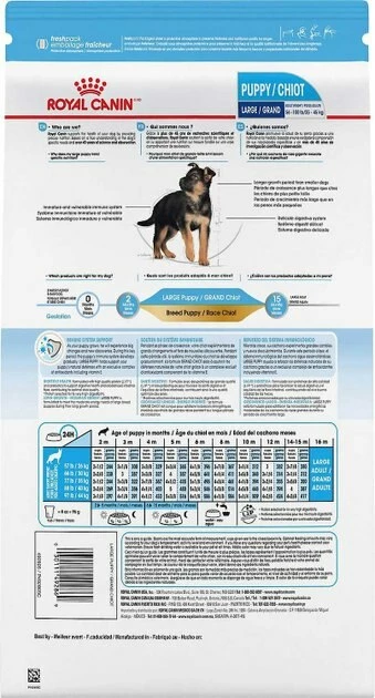 - Royal Canin Large Puppy Dry Dog Food helps support healthy bones and joints which can be placed under stress by body weight.
