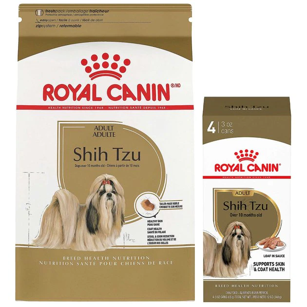 This Royal Canin formula is designed exclusively for pure breed Shih Tzus older than 10 months. The Royal Canin Shih Tzu Adult Dry Dog Food & Royal Canin Shih Tzu Adult Loaf in Sauce Wet Dog Food bundle will help keep their health in order. Support their health needs and protect their skin and coat with this bundle specifically designed for their breed in delicious flavors, so even those picky eaters can stay healthy and shining.