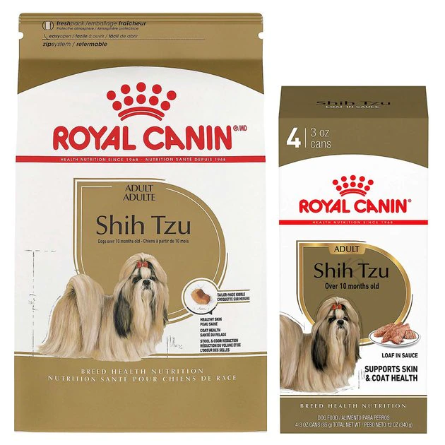 This Royal Canin formula is designed exclusively for pure breed Shih Tzus older than 10 months. The Royal Canin Shih Tzu Adult Dry Dog Food & Royal Canin Shih Tzu Adult Loaf in Sauce Wet Dog Food bundle will help keep their health in order. Support their health needs and protect their skin and coat with this bundle specifically designed for their breed in delicious flavors, so even those picky eaters can stay healthy and shining.