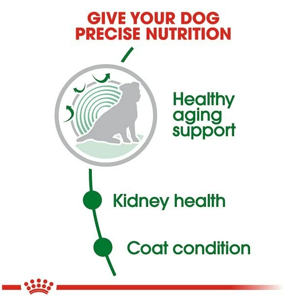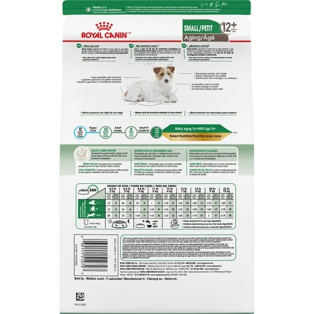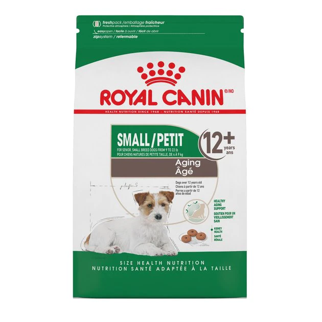 Royal Canin Small Aging 12+ Dry Dog Food is tailored to support healthy aging in your small dog breed. This senior dog food helps small senior dogs maintain vitality through an exclusive blend of nutrients with EPA, DHA, and antioxidants, and helps maintain healthy kidneys with a controlled phosphorus level. Optimal levels of essential fatty acids from fish oil nourish skin and coat for a lustrous shine. Not only that, but the kibble for small dogs is also highly palatable and easily rehydratable: Just add warm water for a soft, easy-to-chew meal your pint-sized senior dog will love.