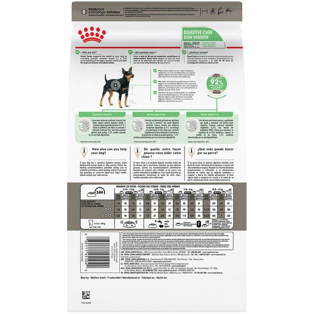 Royal Canin Small Digestive Care Dry Dog Food is tailored nutrition to support your small dogโs sensitive stomach. This diet is specially formulated with a blend of prebiotics and fibers to support healthy digestion. These prebiotics and a special blend of fibers promote a balanced intestinal flora and optimal stool quality. Mix this dry food with Royal Canin Digestive Care Wet Adult Dog Food in can or pouch for a variety of textures to please picky eaters.